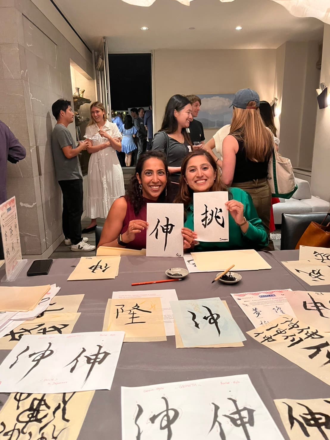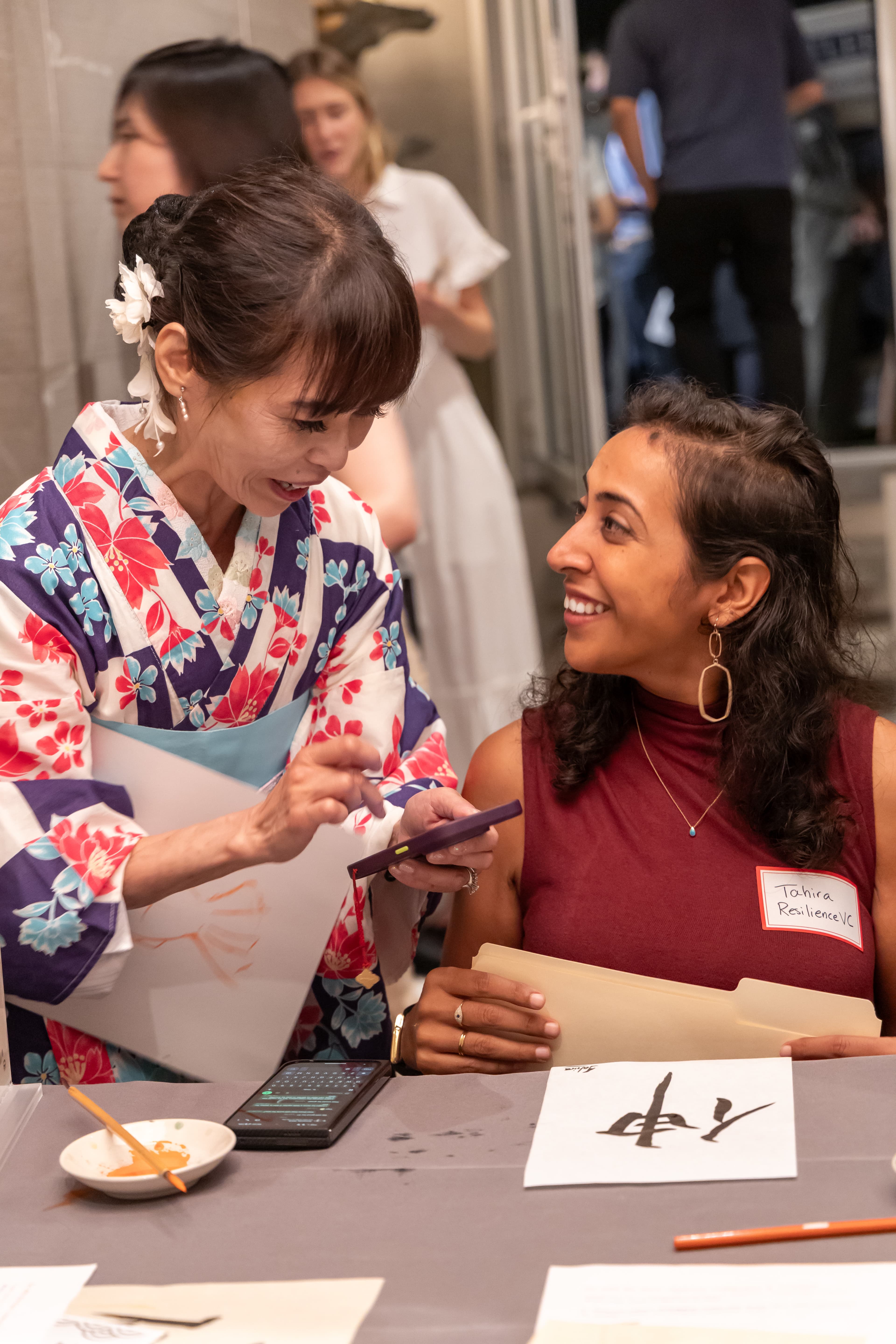 JP Morganスポンサーによるご依頼ワークショップ(Spring Placeの協力のもと開催)。日本の書道は、その瞬間に生まれる芸術です。参加者の皆様には、マインドフルネスと書道の筆遣いを融合させた、五感を刺激する没入型の体験を楽しんでいただきました。